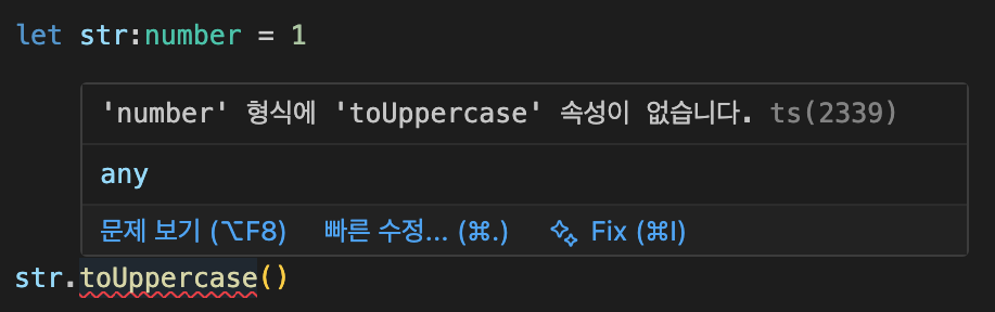 변수명을 보고 ‘string타입이겠지?’ 하고 문자열(string) 내장 메서드를 작성했다고 해보자.